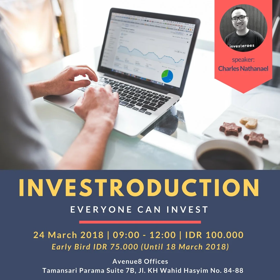 INVESTEROES adalah sebuah start-up company yang ingin membangun budaya dimana investasi menjadi keseharian yang akhirnya menjadi lifesytle.Investeroes mempersembahkan INVESTRODUCTION. Apa saja yang akan kamu dapatkan dari seminar INVESTRODUCTION ini?